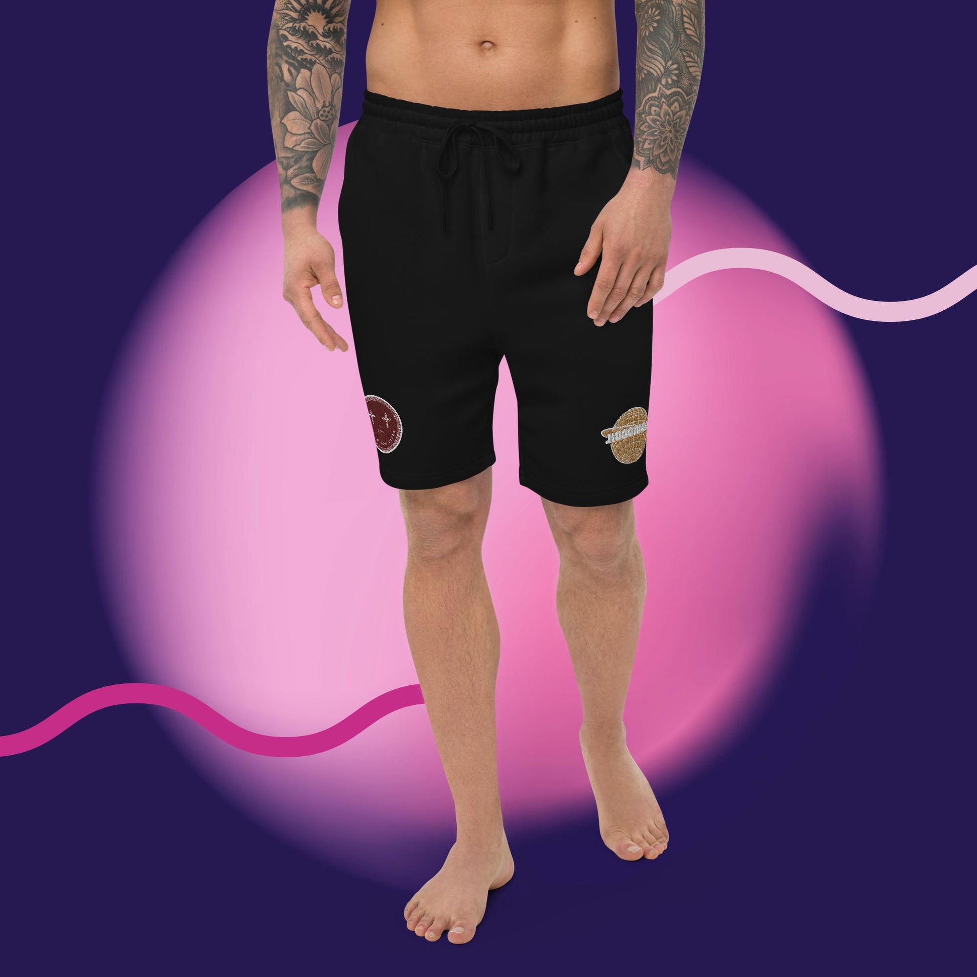 The men’s fleece shorts are soft, comfy, and great for lounging indoors or going out. The shorts have 1 back pocket, 2 jersey-lined hand pockets, and an elastic waistband with a shoestring drawcord.